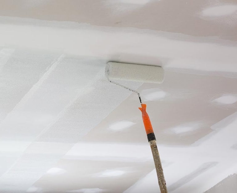 Outre l'application au rouleau/ pinceau, nous utilisons la technologie AIRLESS qui consiste à projeter la peinture au pistolet sur les murs et plafonds.